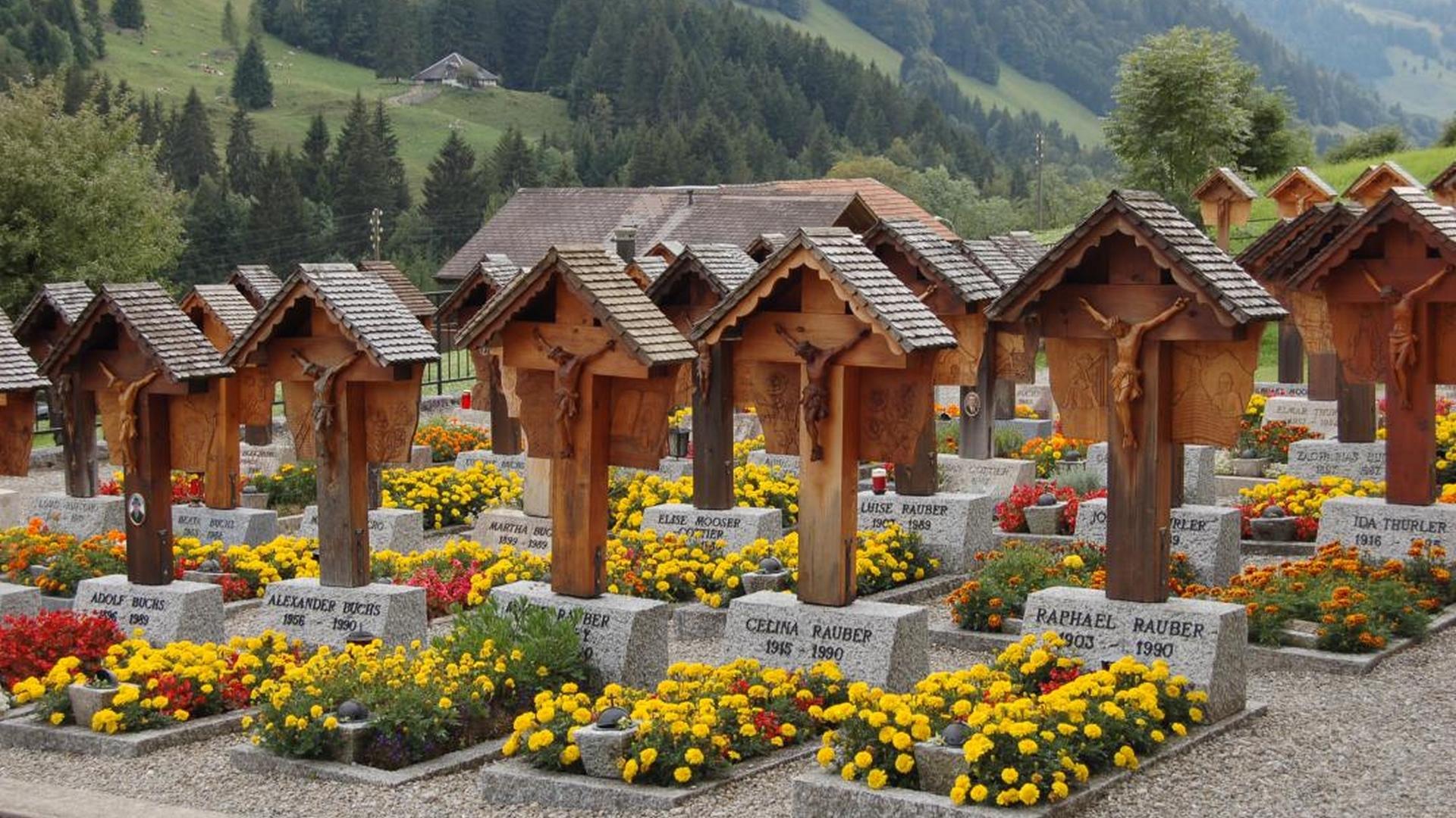 Friedhof und Holzschnitzerei © Jaun-Tourismus Im Friedhof von Jaun, entdecken Sie ein einzigartiges Handwerk, die Holzkreuzen als Holzschnitzereien gestaltet. Weitere Informationen Link Webseite